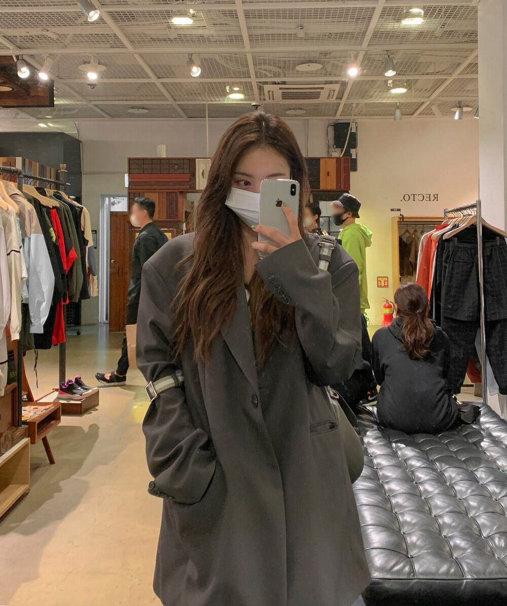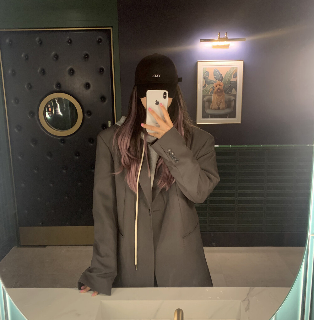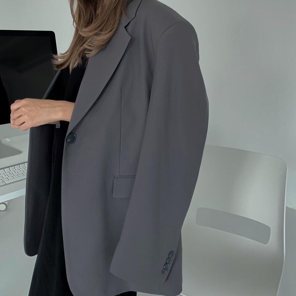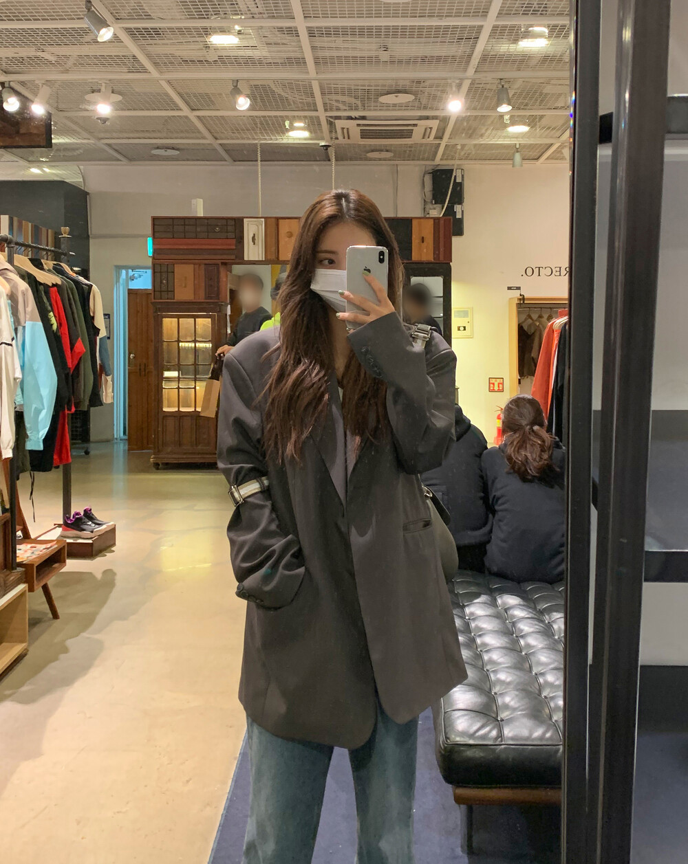그레이 오버핏 자켓 키 150중반의 44사이즈 착용샷입니다