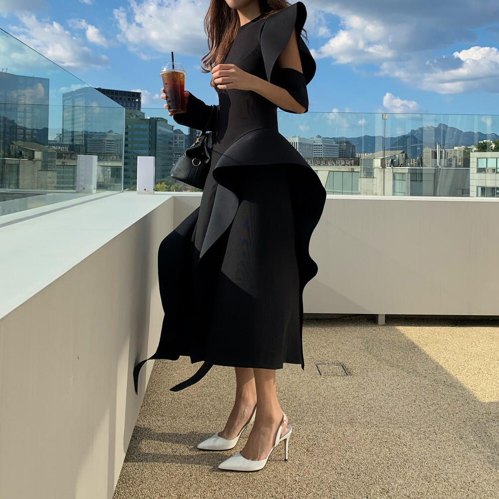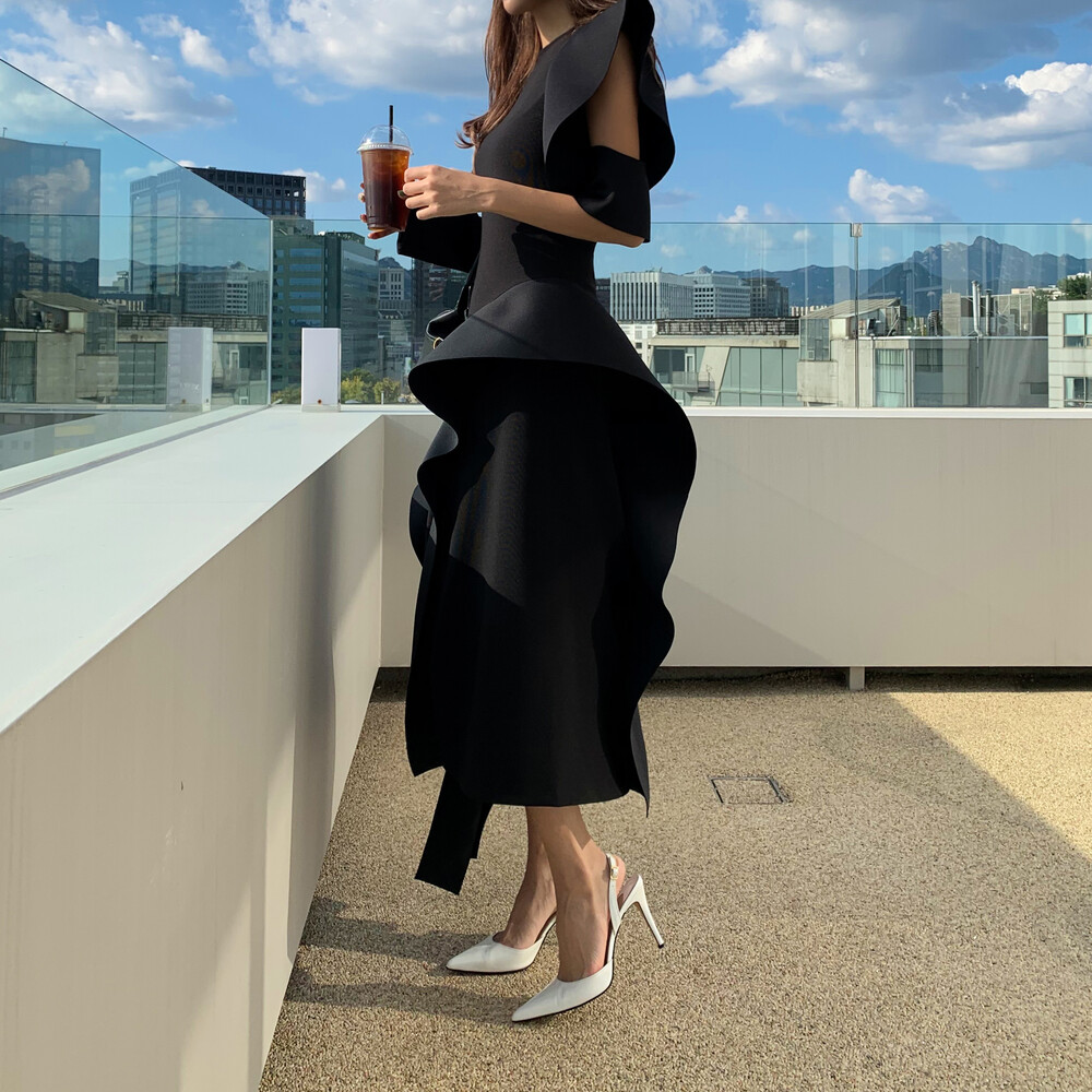 언발란스한 커팅 프릴로 풍성한 스커트라인이