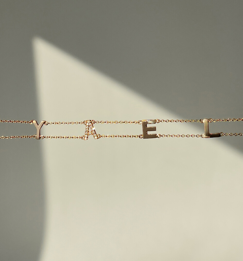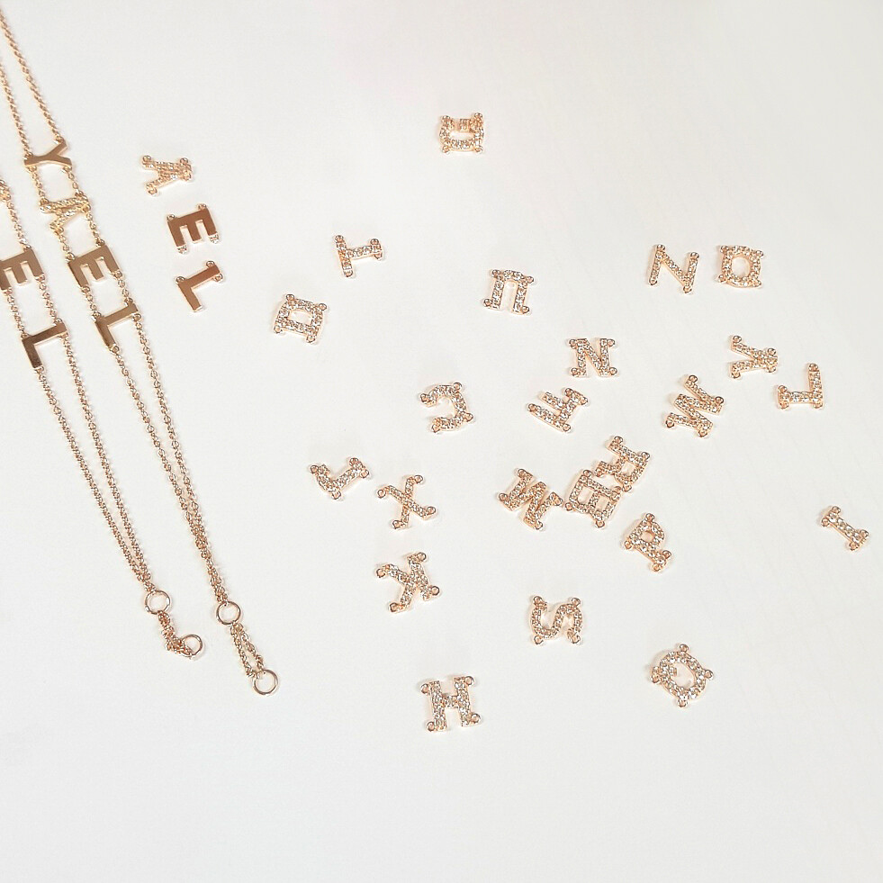 이니셜 목걸이는 모든 알파벳 틀을 하나하나 제작하여 배열에 맞게 체인에 세팅하는