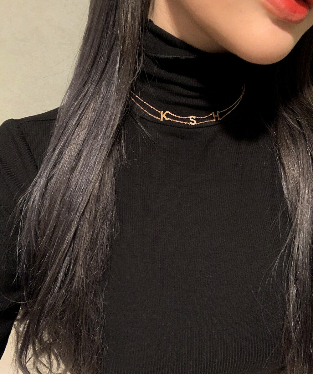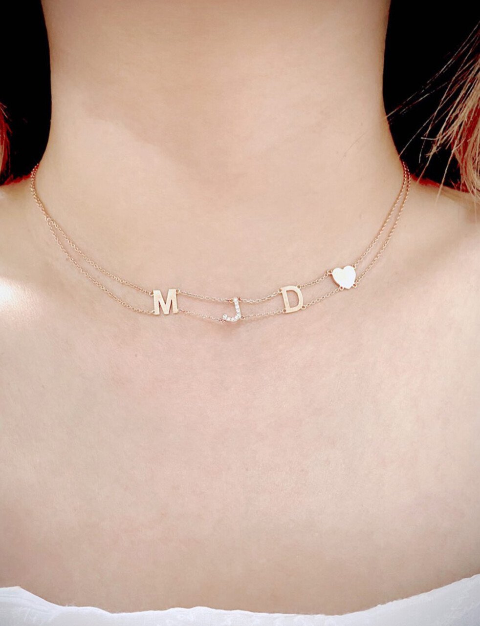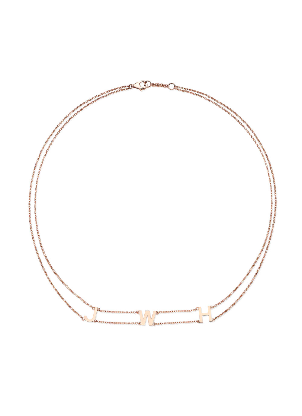 두 줄의 로즈골드 체인에 이니셜들이 연결되어 스페셜 그리고 미니멀한