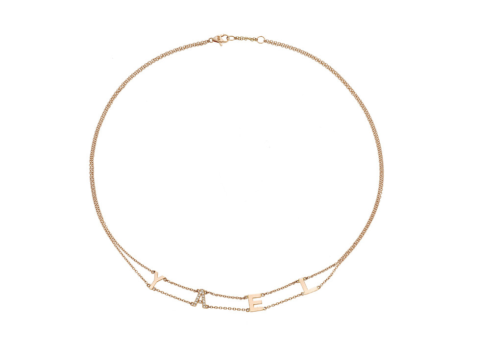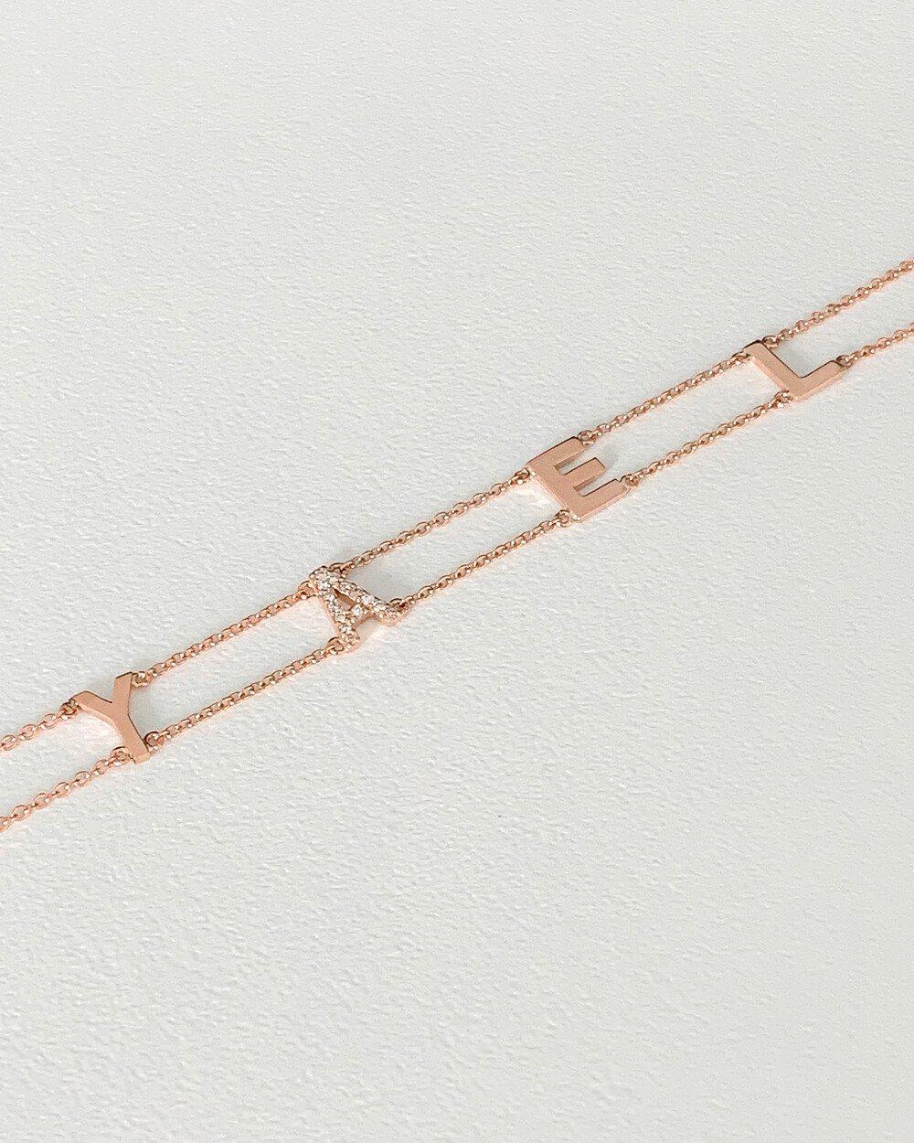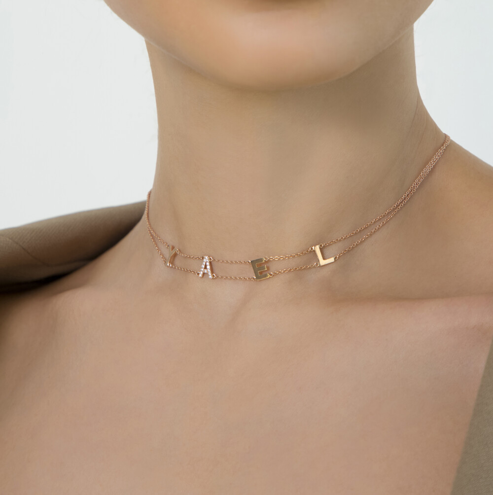 두 줄의 로즈골드 체인에 이니셜들이 연결되어 스페셜 그리고 미니멀한