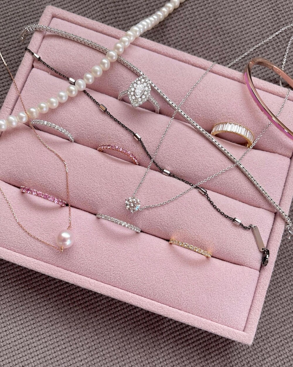 리얼 진주는 유기질 보석으로 물과 습기에 약합니다