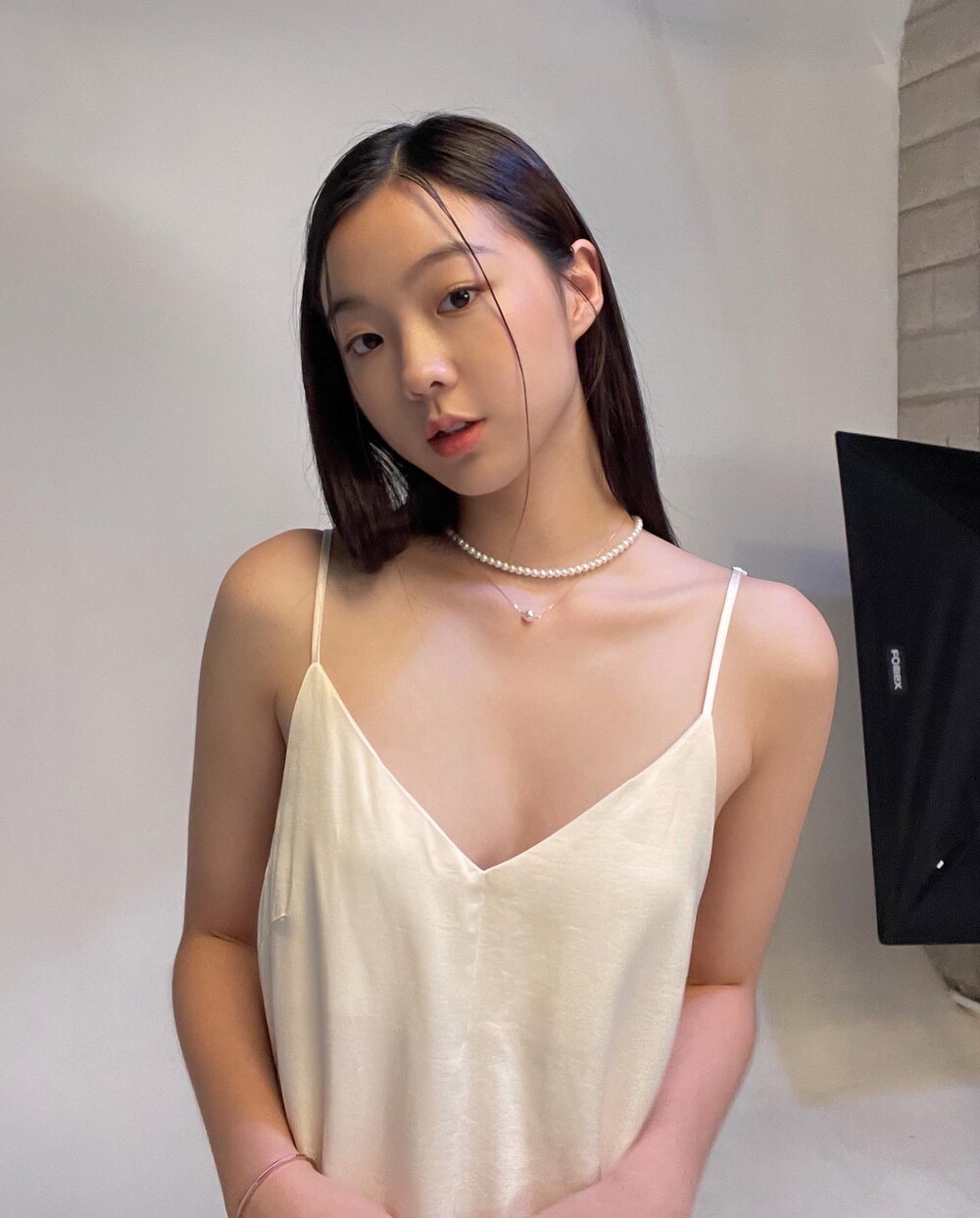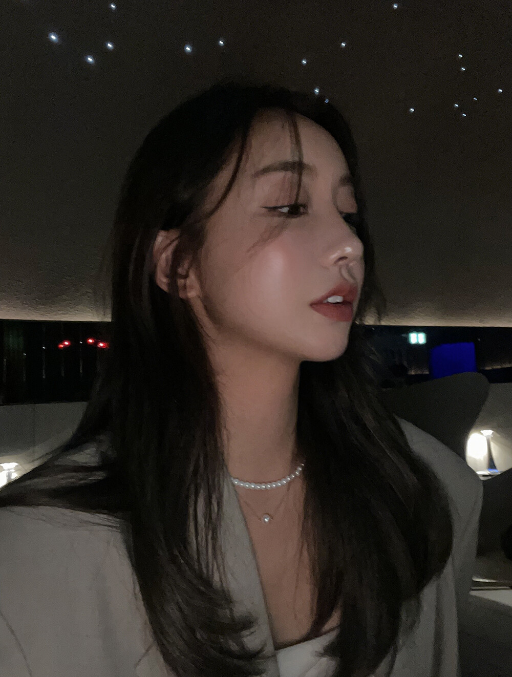 진주 비드 네크리스 착용