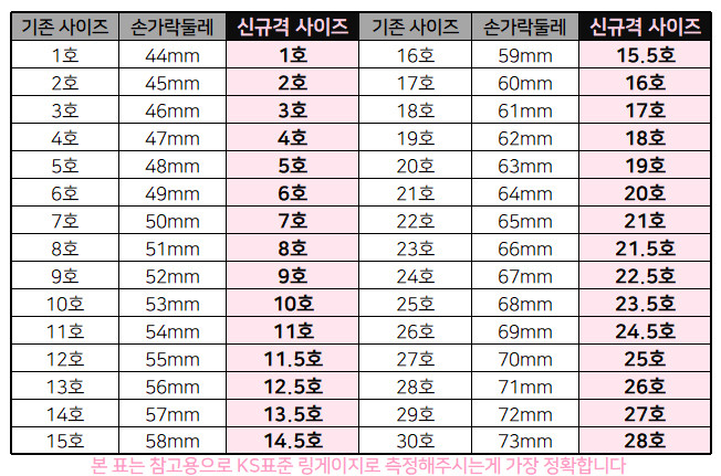 2020년 규정된 KS규격호수를 기준으로 반지를 제작하고 있습니다